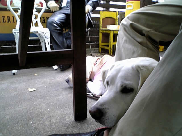 昼食は、ワンコOKのお店で一緒に、と言ってもワンコたちはテーブルの下でスティなんですけどネ