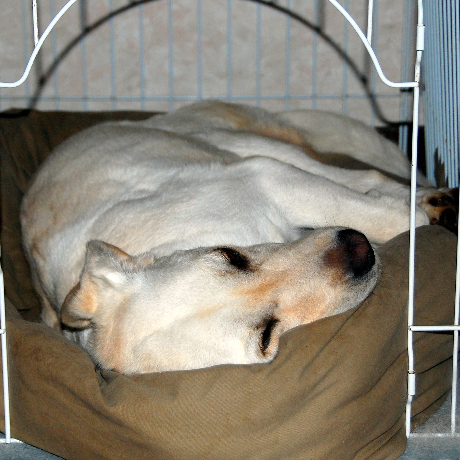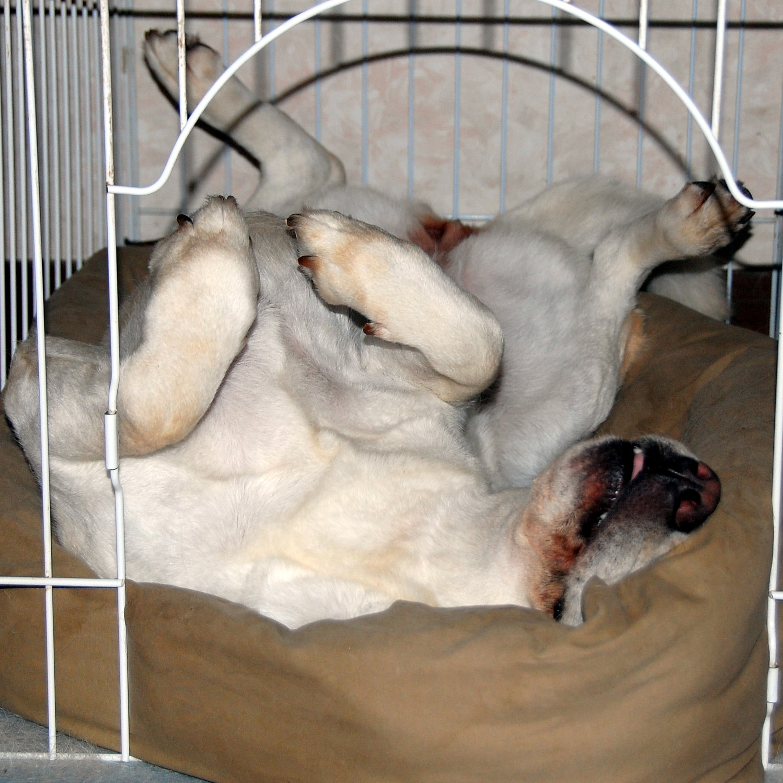 ワンコ達が寝ているゲージの中には、縁にクッションの付いたベットが入っているの