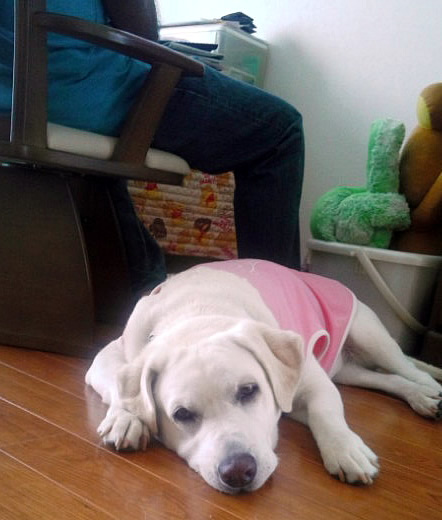 そして、お隣には盲導犬のサファイヤ君もいて、オス犬たぁくさんの社会なんですけど、