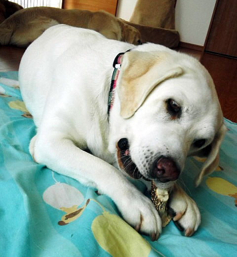 二日目には環境に慣れて、お気に入りの場所も出来、そこで鹿の角をかじるのがお気に入りだったそうで、