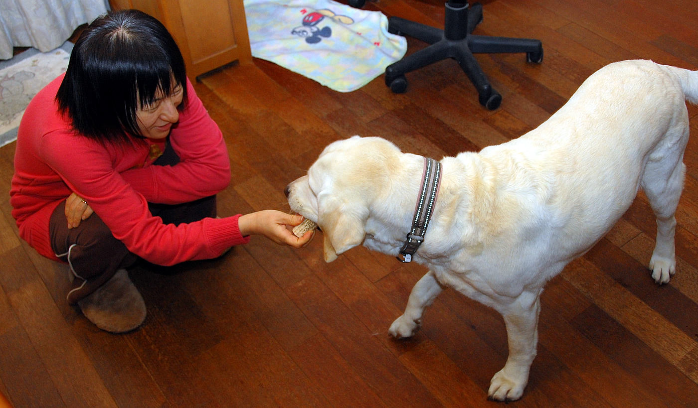 長女ジュナちゃん(引退犬:イエロー)、次女セレちゃん(キャリアチェンジ犬:ソラの妹・ブラック)、三女ユーミンちゃん(繁殖引退犬:ゴールデン)、見た目もキャリアもそれぞれ違う三頭姉妹です。