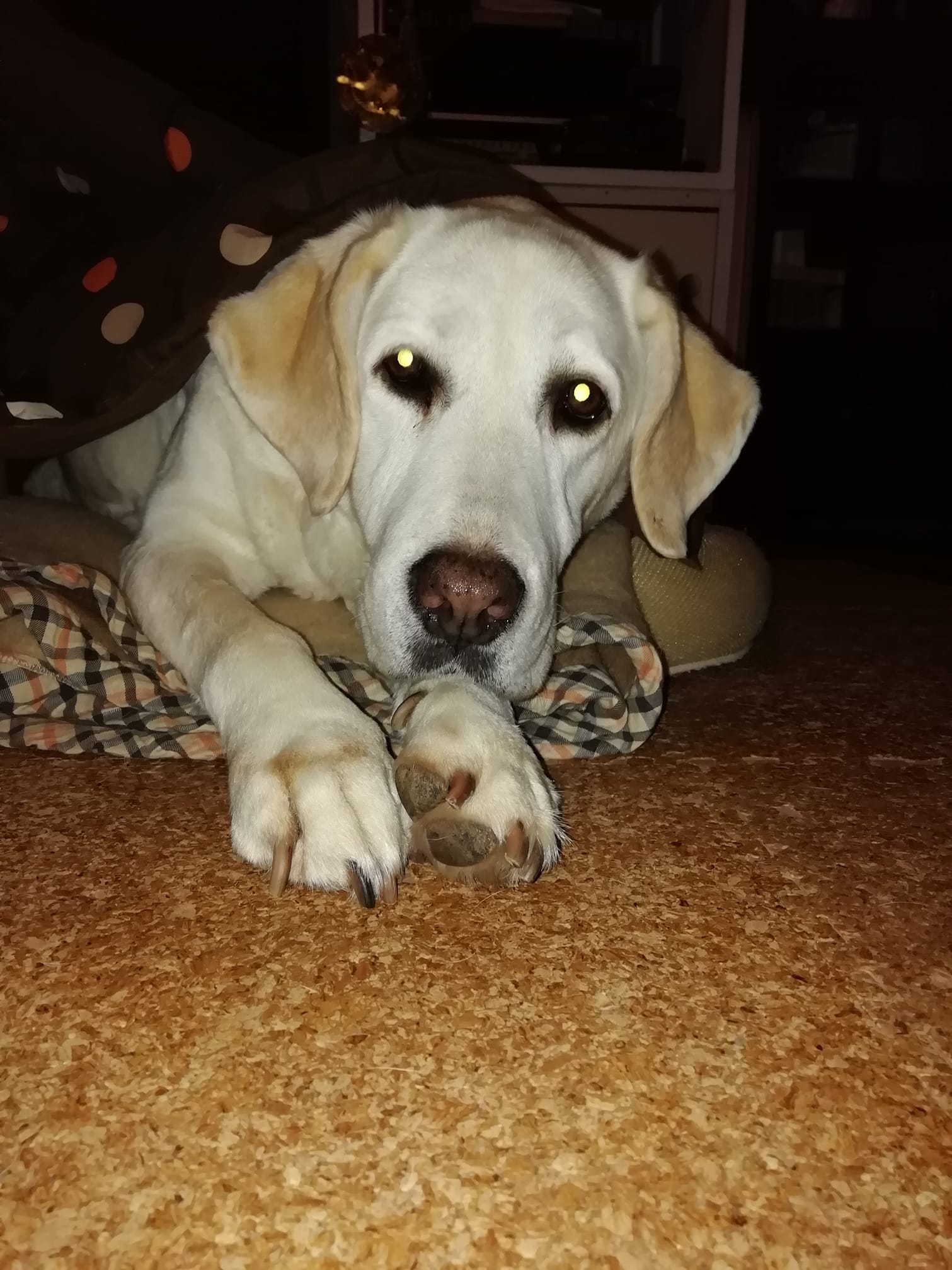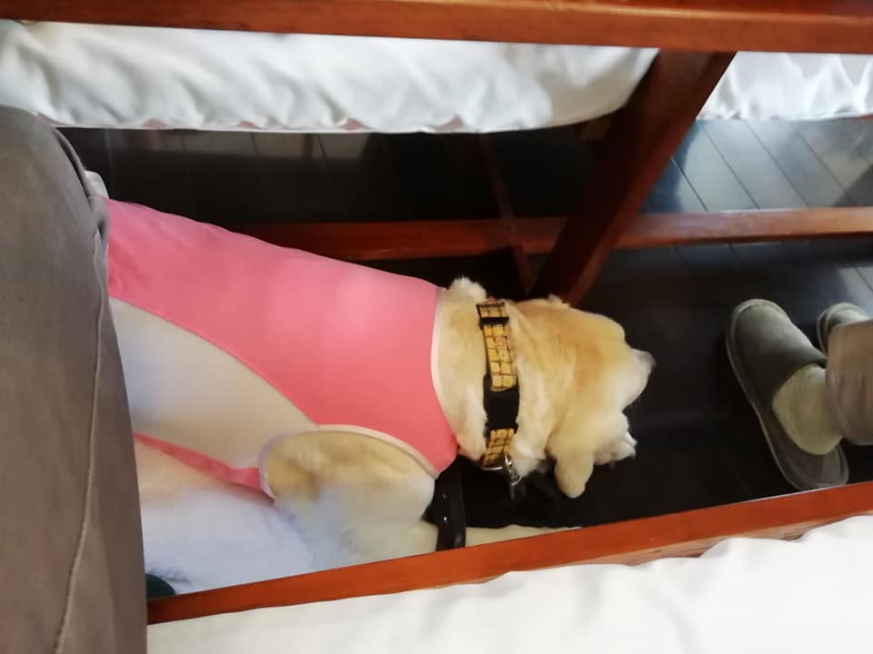 わたしは、土間にダウンして待っでし