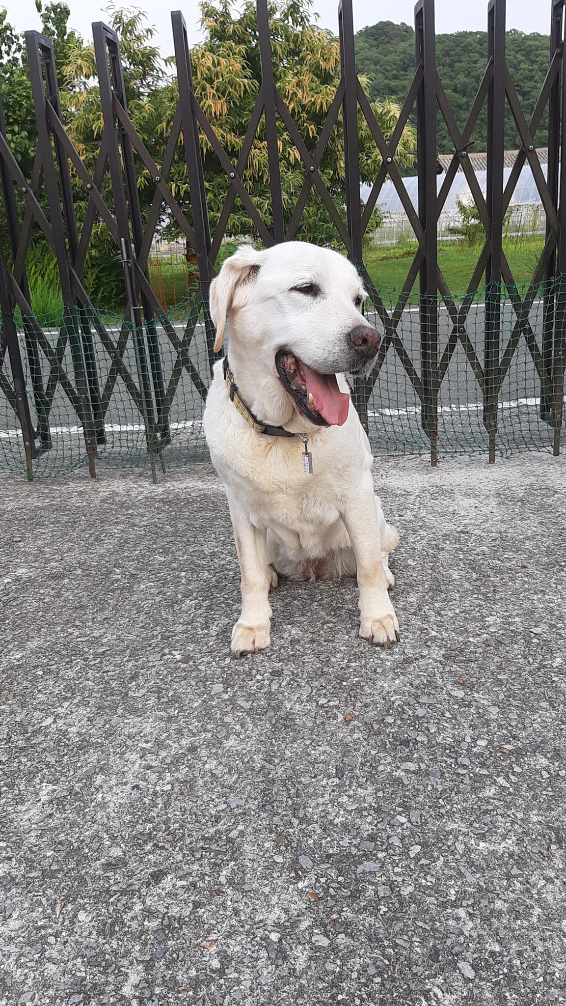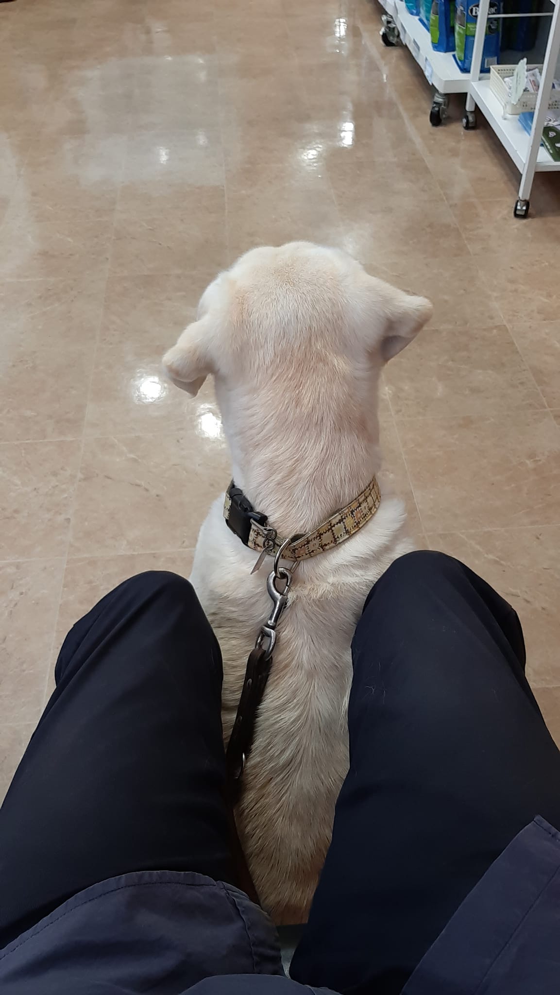 写真はその時の物で、カートにシッツしたアズキです。右腕重心で左腕をかばっています。