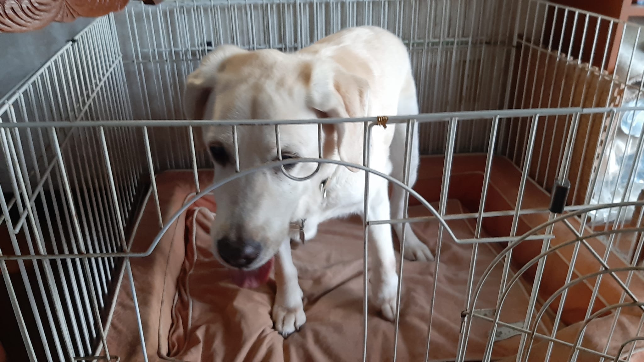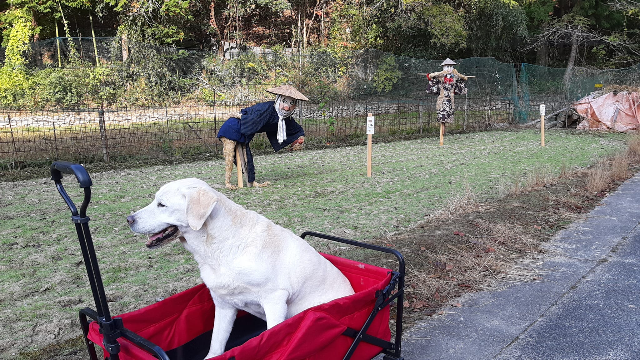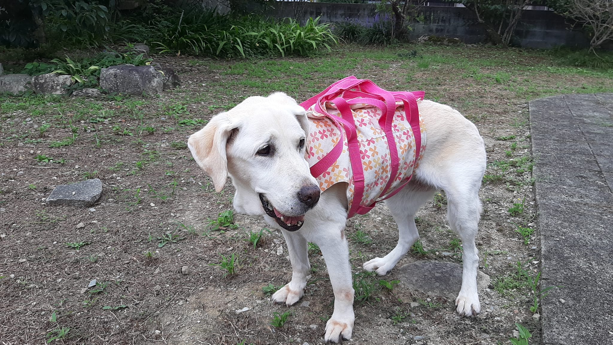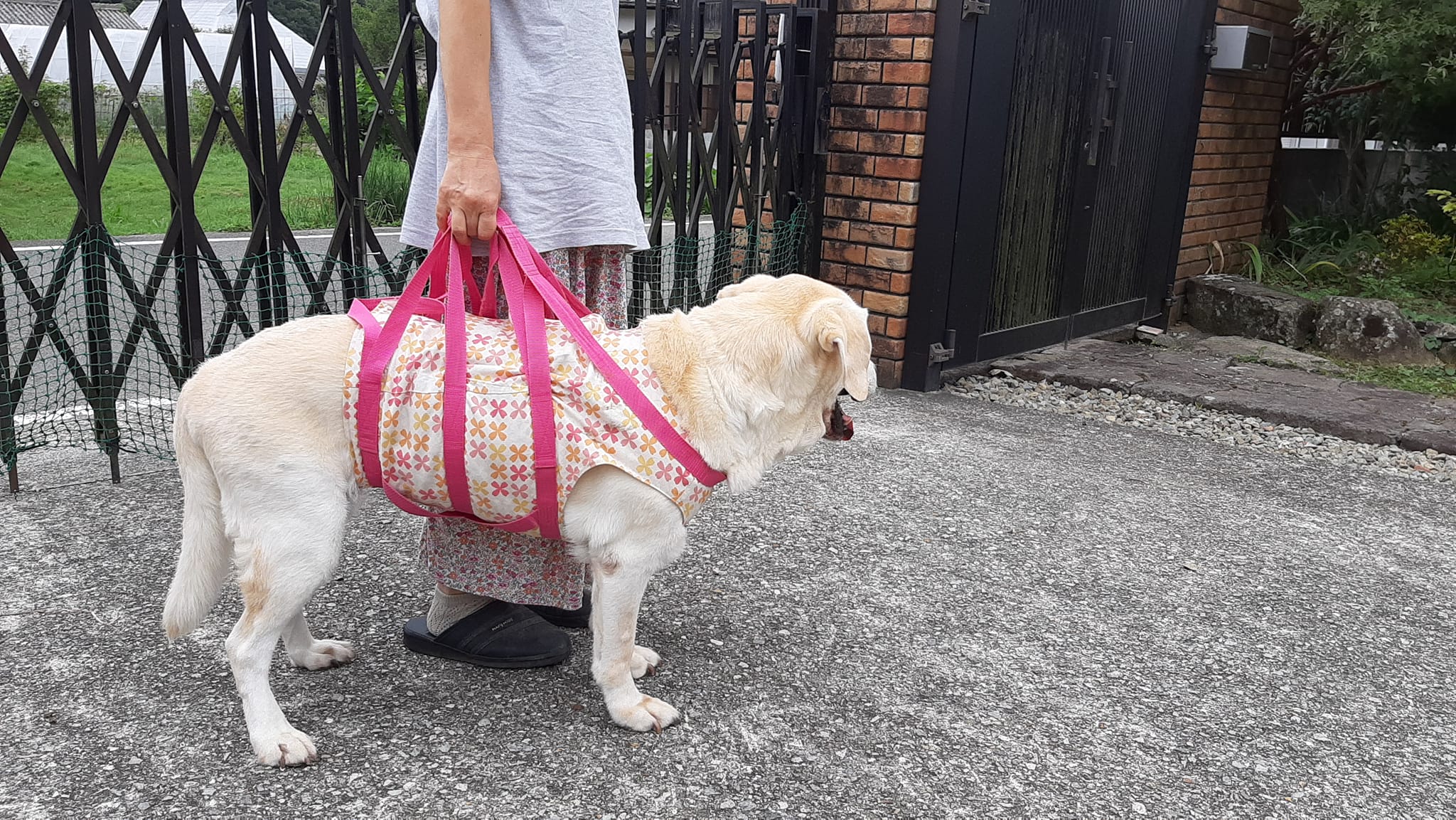肩が痛くても散歩に行きたいアズキ。足を引き擦りながらも、「お散歩に行こー」とアピール。