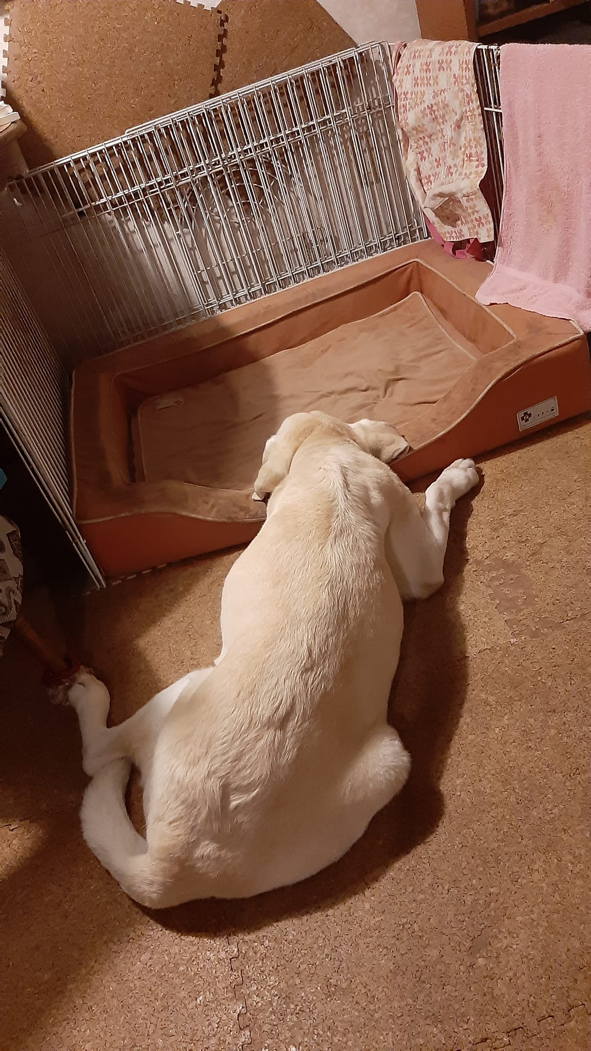 ご飯の時間が近づくと、台所に来てバタバタしだすので、「ベット」で待つように指示、ちょっとベットに行っては、また台所に来て催促。